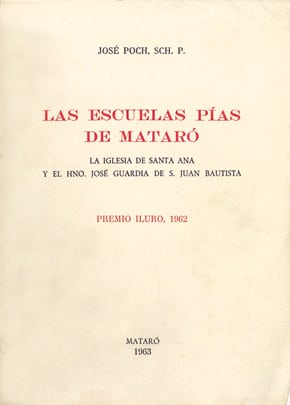 José Poch Las escuelas pías de Mataró. La iglesia de Santa Ana y el Hno. José Guardia de San Juan Bautista (Apuntes históricos y documentos) (Premi Iluro 1962), 1963 Pròleg…