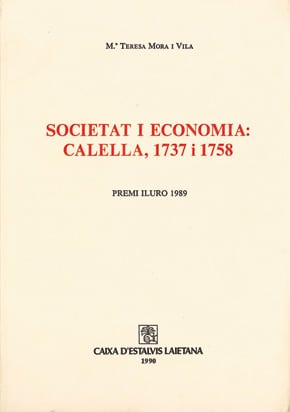M. Teresa Mora i Vila Societat i economia: Calella, 1737 i 1758 (Premi Iluro 1989), 1990 Pròleg de Carlos Martínez Shaw Prenent com a font històrica els cadastres calellencs, es…