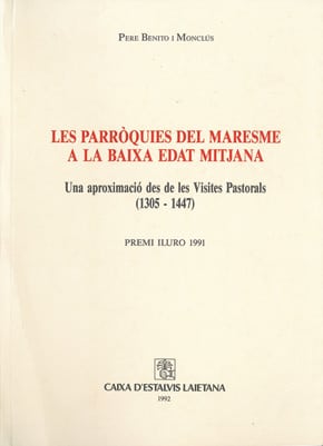 Pere Benito i Monclús Les parròquies del Maresme a la Baixa Edat Mitjana. Una aproximació des de les visites pastorals (1305-1447) (Premi Iluro 1991), 1992 Pròleg d’Antoni Riera i Melis…